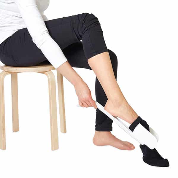U schuift de kous of sok over het frame die u vervolgens over de voet schuift. Vervolgens trekt u de sok omhoog wanneer deze goed zit en haalt u het frame er weer vanaf. Een sokkenhulp is een goed hulpmiddel wanneer u moeite heeft met bukken en moeilijk uw sokken aan kunt trekken. Een sokkenhulp is verkrijgbaar in diverse varianten, vaak al vanaf een paar euro bij een drogisterij, thuiszorgwinkel of hulpmiddelen webshop.