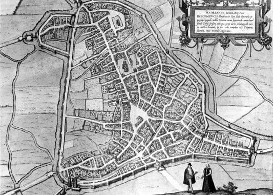 Hier zien we een plattegrond van Den Bosch uit het jaar 1572 (de zogenaamde plattegrond van Barlandus).