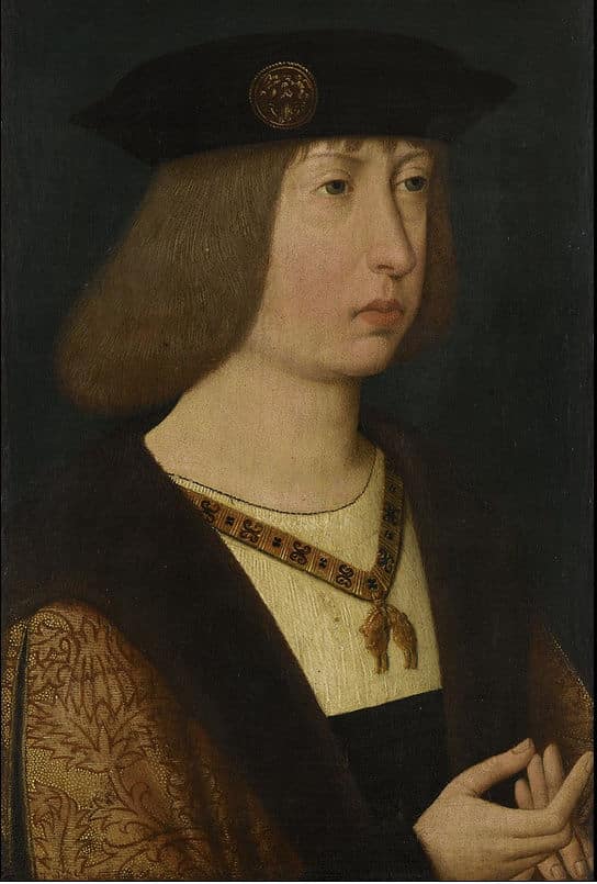 Links zien we het portret van Filips de Schone (1478 – 1506) . Dat was overigens zijn bijnaam want zijn officiële naam was Filips I. Hij was heerser over de landen die tezamen de Habsburgse Nederlanden en de kroon van Castilië werden genoemd. Hij was een zoon van Maximiliaan van Oostenrijk en Maria van Bourgondië en een broer van Margaretha van Oostenrijk. Maar ook Maximiliaan van Oostenrijk heeft in deze periode Den Bosch bezocht.