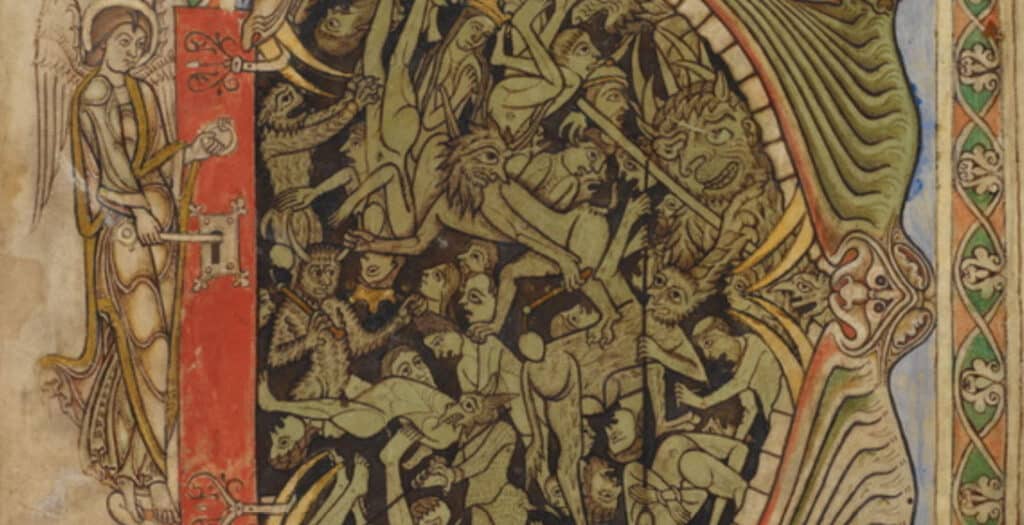 Hier zien we een afbeelding uit het zogenaamde Psalmenboek van Winchester. We gaan ervan uit dat het halverwege de 12e eeuw in Winchester’s Old Minster is gemaakt.