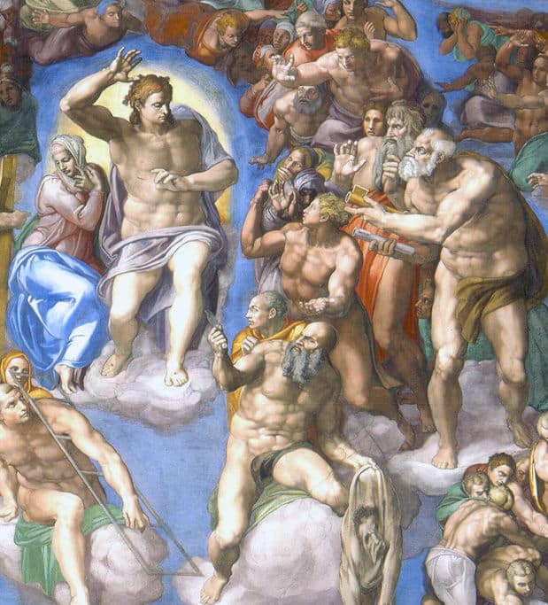 Een van de mooiste kunstwerken die we kennen, is de wandschildering die Michelangelo schilderde in de Sixtijnse Kapel in Rome. Dat gebeurde tussen 1536 en 1541. Dus zo’n 20 jaar na het overlijden van Jeroen Bosch. Na voltooiing van het grootste gedeelte krijgt Micheangelo te horen dat er te veel naakt te zien is en dat moet bedekt worden.