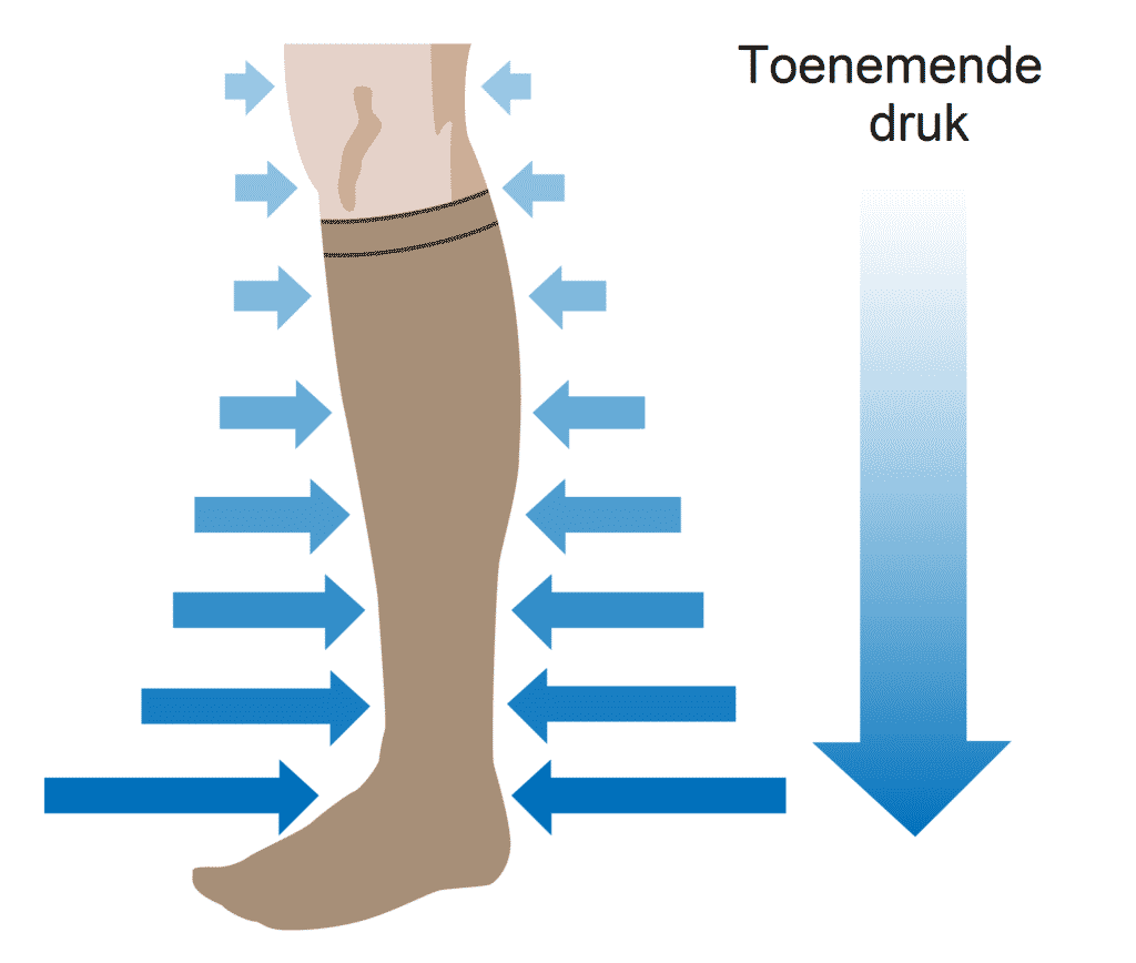 Vocht in de bloedvaten kan soms om verschillende redenen de neiging hebben om uit de bloedvaten te komen, en op te hopen in het bindweefsel van het been. Het vocht gaat terug in het vaatsysteem wanneer u voor een langere tijd gaat liggen, hierdoor neemt de druk in uw benen weer af. Door middel van het dragen van een elastische steunkous wordt er druk uitgeoefend op de bindweefsels waardoor het vocht niet de kans krijgt om uit de bloedvaten te komen, waardoor het been slank blijft.