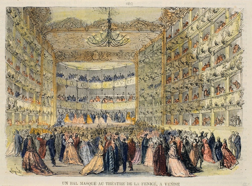 Hier zien we het beroemde Teatro La Fenice in Venetië, waar grote opera’s werden opgevoerd.